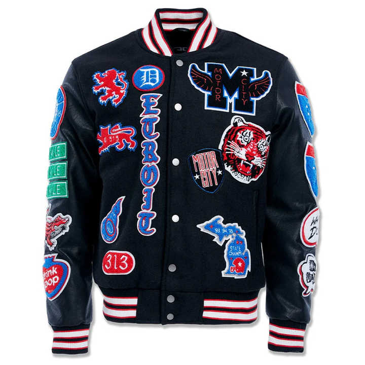แจ็กเก็ตเลตเตอร์แมนแขนยาวสำหรับผู้ชายแจ็กเก็ตเบสบอลโลโก้วิทยาลัยสำหรับผู้ชายดีไซน์ใหม่