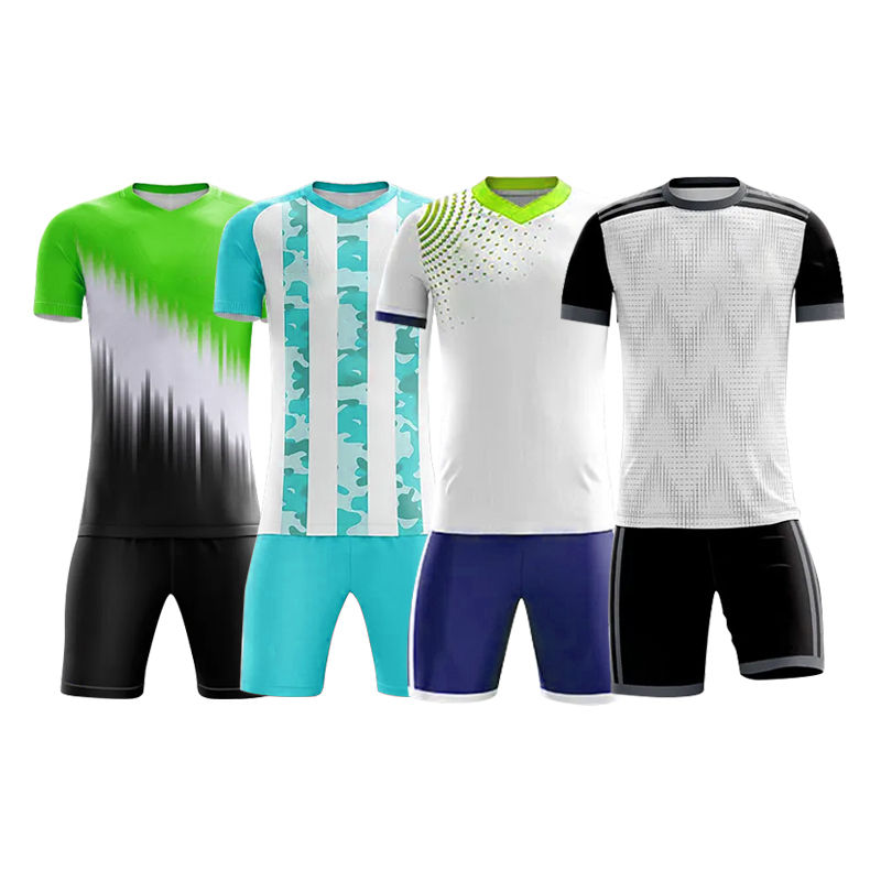 ชุดกีฬาฟุตบอลโพลีเอสเตอร์คุณภาพสูงเสื้อฟุตบอลแขนสั้นระบายอากาศได้ดีดีไซน์ใหม่
