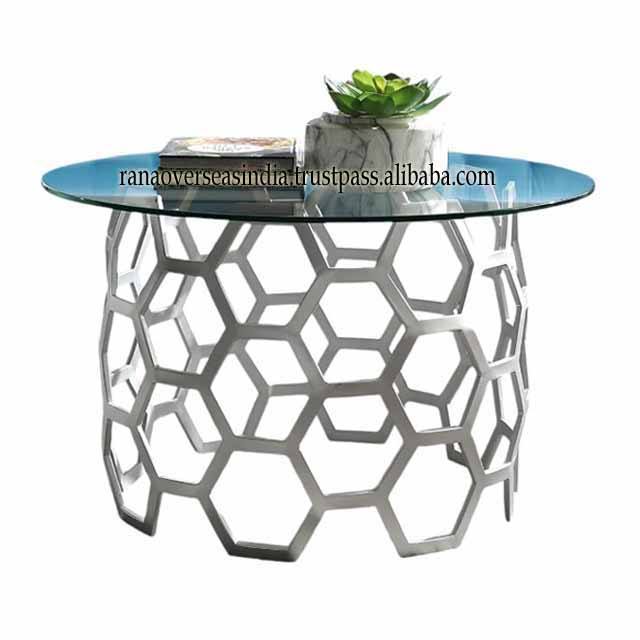คีย์เวิร์ด:โต๊ะกลางบนกระจกทรงกลมหรูหราพร้อมกรอบโลหะแข็งแรง