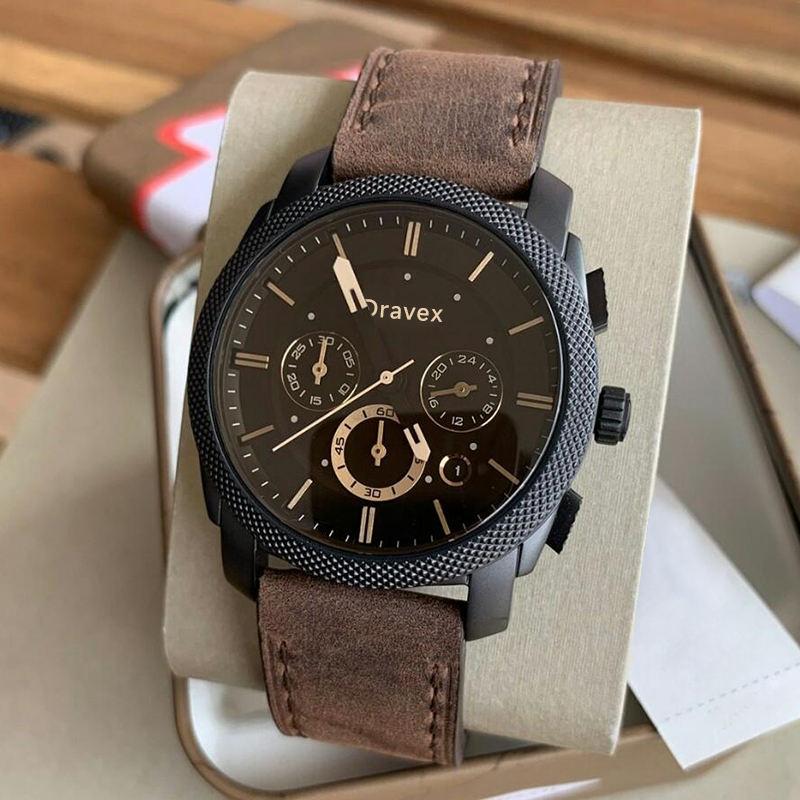 นาฬิกาควอตซ์ผู้ชาย ดีไซน์ใหม่ คุณภาพสูง หน้าปัดสีดำทันสมัย สายหนัง เหมาะสำหรับกิจกรรมกลางแจ้ง ลำลอง ใช้ได้ทุกวัน