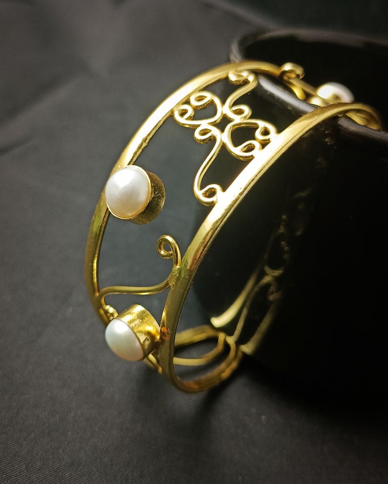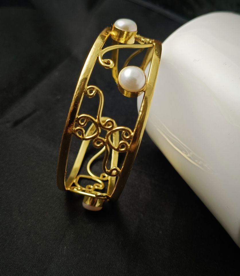New Design High demanded Women's Elegant Gold Plated Brass Fashion Bracelets & Bangles Beautiful Pearl Collection for Weeding