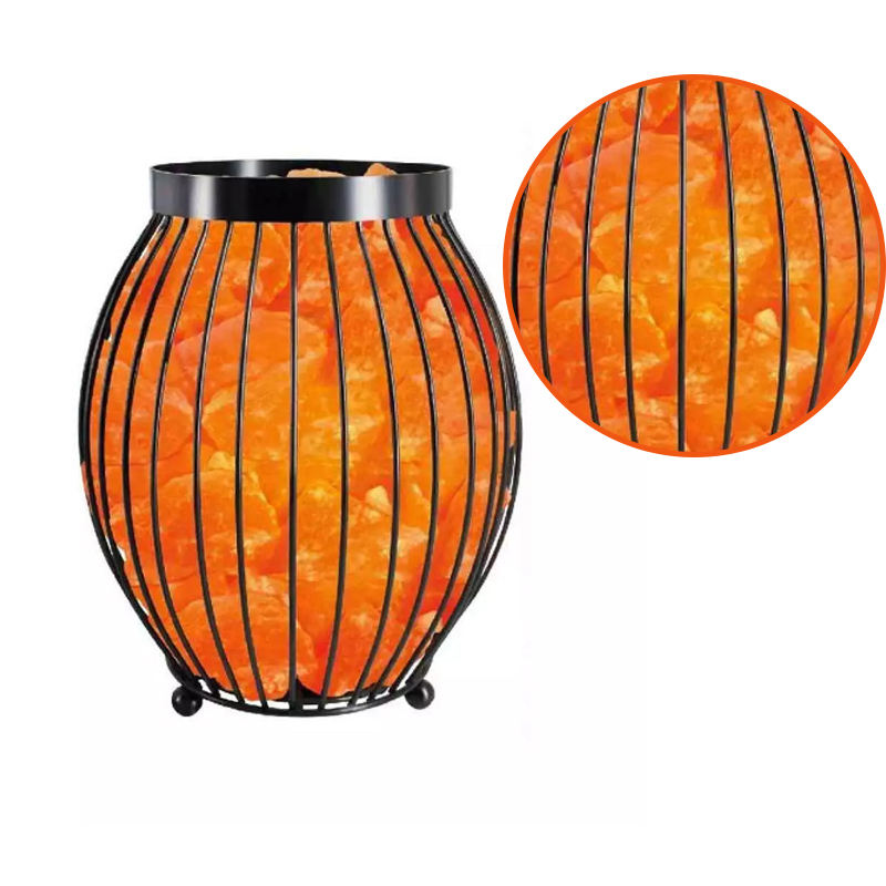 โคมไฟหินเกลือหิมาลัยดีไซน์ใหม่ พร้อมตะกร้าเหล็กแบบกำหนดขนาดได้ ไฟตกแต่งหินเกลือสีชมพู