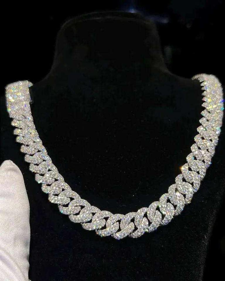 สร้อยคอเงินแท้ 925 ดีไซน์ใหม่ สไตล์ฮิปฮอป ประดับเพชรโมอิสซาไนต์ VVS แบบ Cuban Link ขายส่ง
