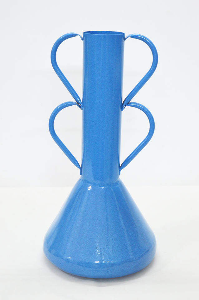 แจกันดอกไม้เคลือบผงสีฟ้าทันสมัยแจกันตกแต่งบ้าน/งานแต่งงานทำจากโลหะเคลือบด้วยผงสีฟ้า