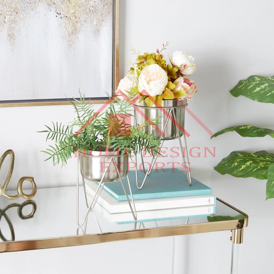 กระถางเงินพร้อมขาตั้งสำหรับตกแต่งในงานแต่งงานกระถางต้นไม้ทำจากโลหะ