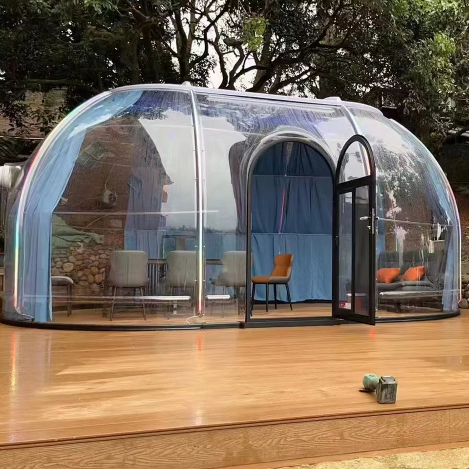 เต็นท์โดมโพลีคาร์บอเนตโพลีคาร์บอเนตแบบแยกส่วนสำหรับโรงแรมบ้านพร้อมฟองคริสตัล