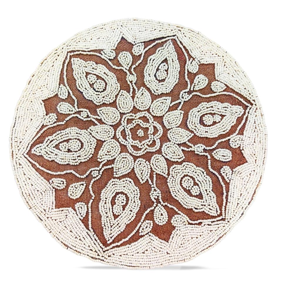 แผ่นรองจานทรงกลม ดีไซน์ใหม่ ลวดลายลูกปัด วินเทจ เป็นมิตรกับสิ่งแวดล้อม ทนทาน ทำมือ 100% สำหรับใช้ในบ้าน งานแต่งงาน