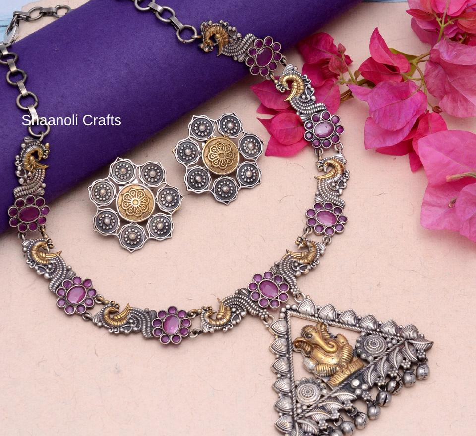 ชุดสร้อยคอสองสีแบบอินเดียดีไซน์ใหม่ชุดเครื่องประดับเงินออกซิไดซ์สำหรับผู้หญิงและเด็กผู้หญิงสำหรับงานแต่งงานงานปาร์ตี้สร้อยคอ