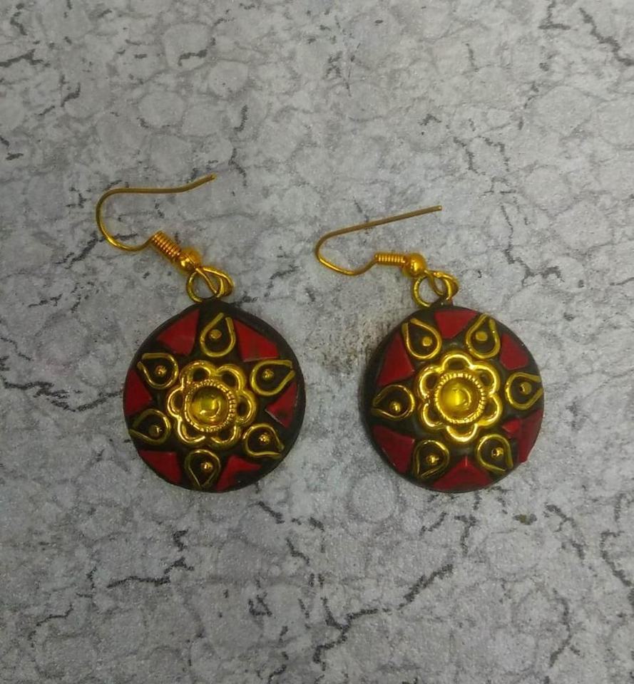 ต่างหูทองเหลืองแบบฝังเรซินทำมืออินเดียดีไซน์ใหม่2024อินเดียสำหรับผู้หญิงและเด็กผู้หญิงจากอินเดีย