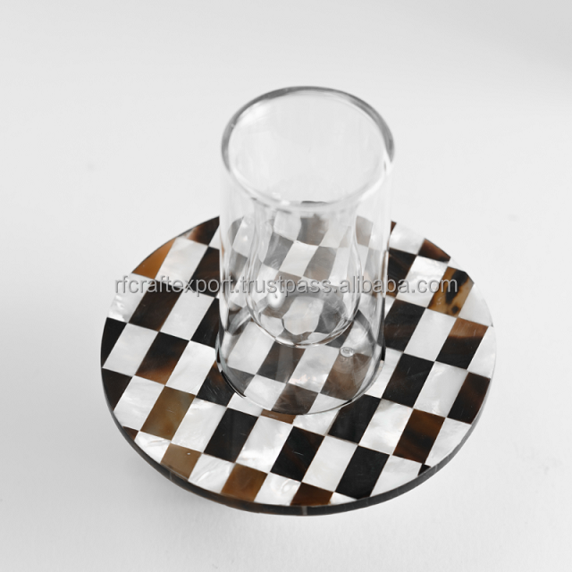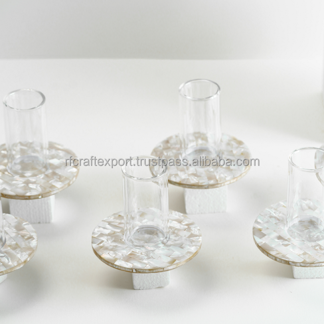 ชุดถาดรองแก้วชาและจานรองสำหรับโต๊ะกาแฟแบบฝังลายกระดูกมุกแบบแฮนด์เมดดีไซน์ใหม่จากอินเดีย
