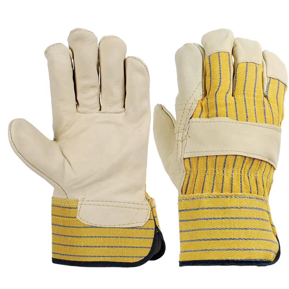 ถุงมือทำงานนิรภัยสำหรับงานก่อสร้างอุตสาหกรรม ดีไซน์ใหม่ หนังวัวแท้เกรด A ป้องกันไฟ ทนทาน เหมาะสำหรับงานสวน