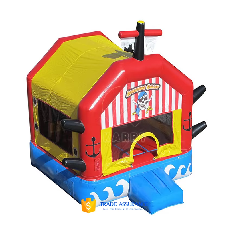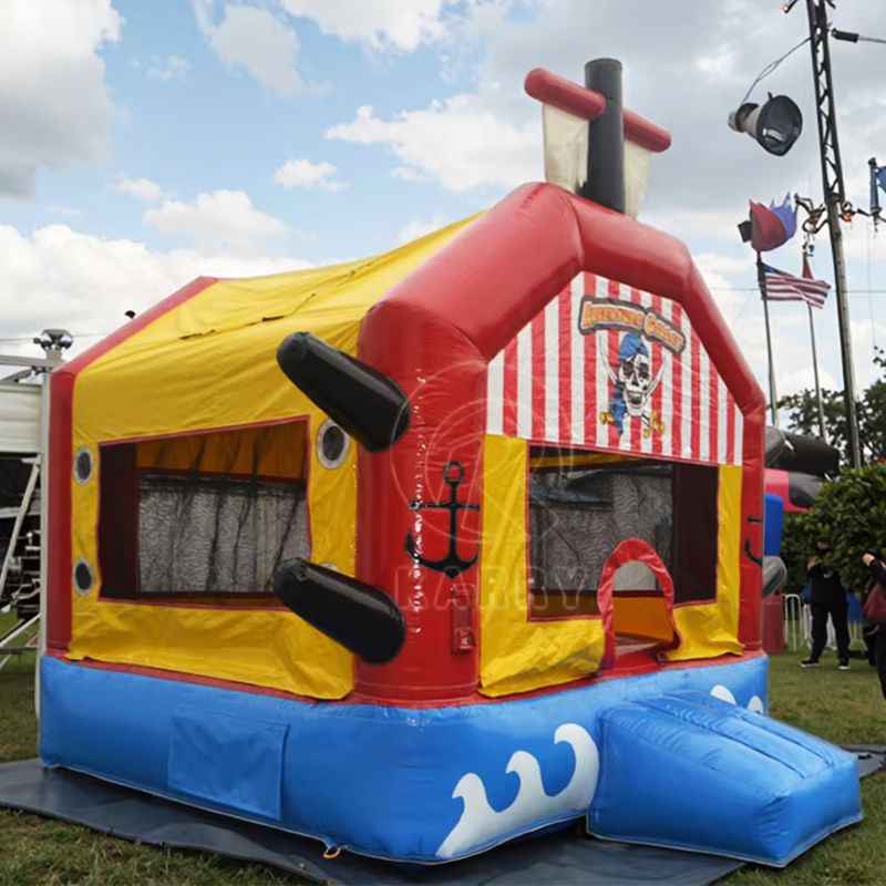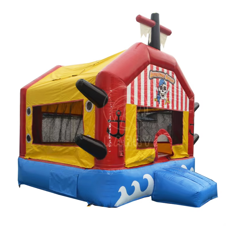บ้านเป่าลมวัสดุ PVC แบบเป่าลมบ้านเป่าลมรูปปราสาทโจรสลัดเป็นมิตรกับสิ่งแวดล้อม