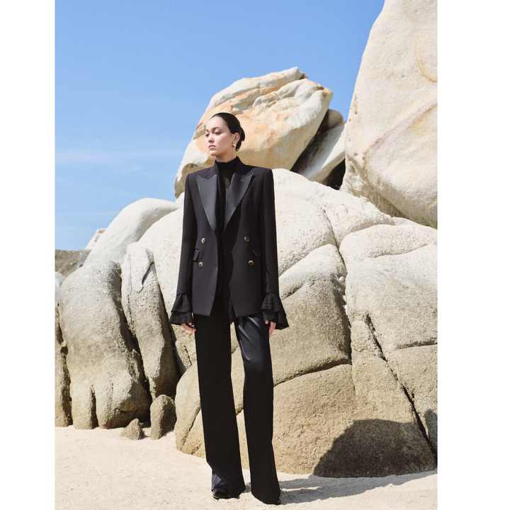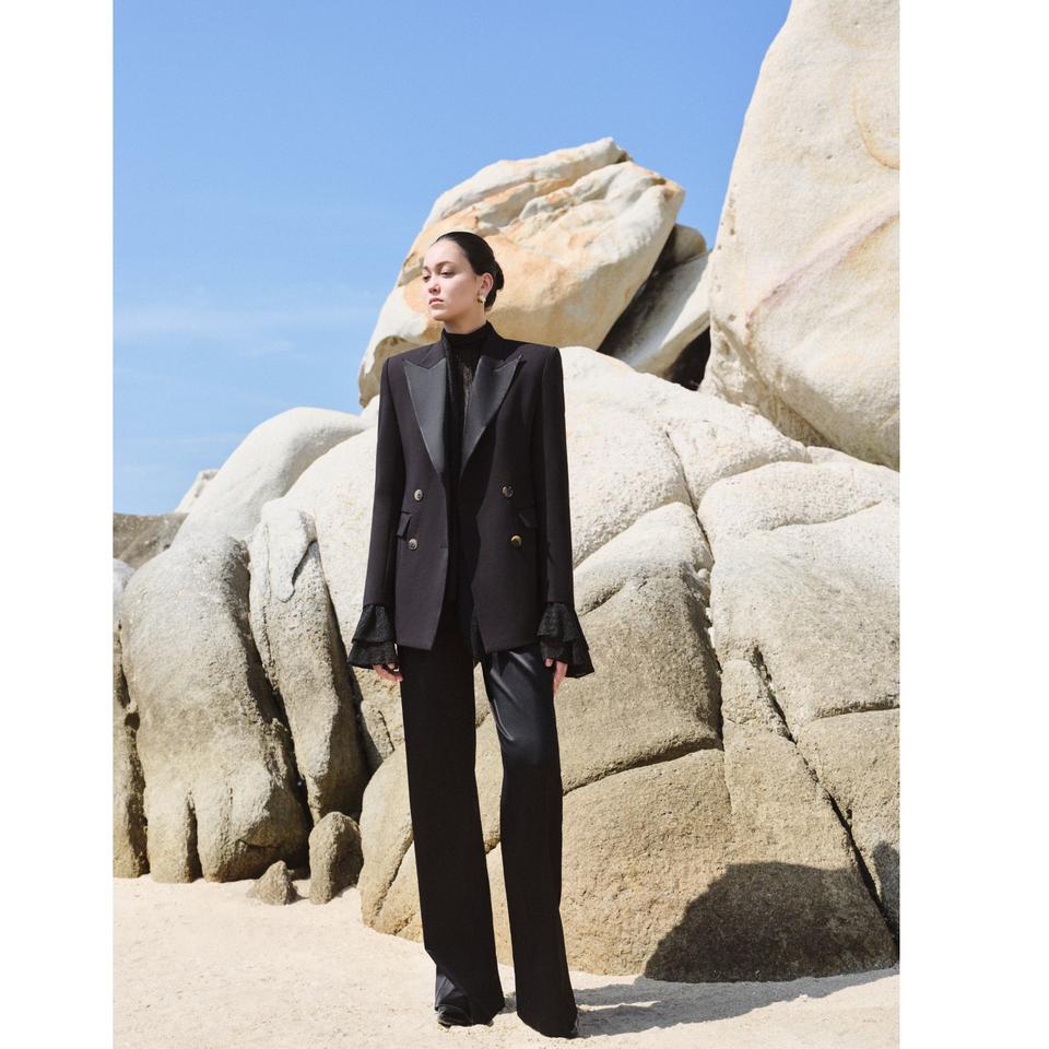 เสื้อเบลเซอร์ผ้าทอเรยอนสำหรับผู้หญิงเสื้อเบลเซอร์ผ้าสแปนเด็กซ์แฟชั่นชั้นสูงดีไซน์ใหม่
