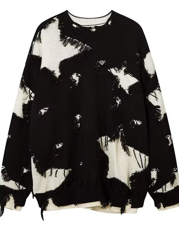 เสื้อสเวตเตอร์สไตล์ขี้เกียจสำหรับผู้ชายและผู้หญิงเสื้อสเวตเตอร์ฮิปฮอปขอบสีดำและน้ำตาลแบบลำลองแนวสตรีทสำหรับผู้ชายและผู้หญิงดีไซน์ใหม่