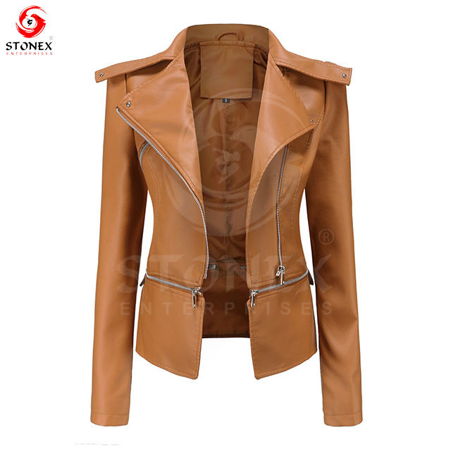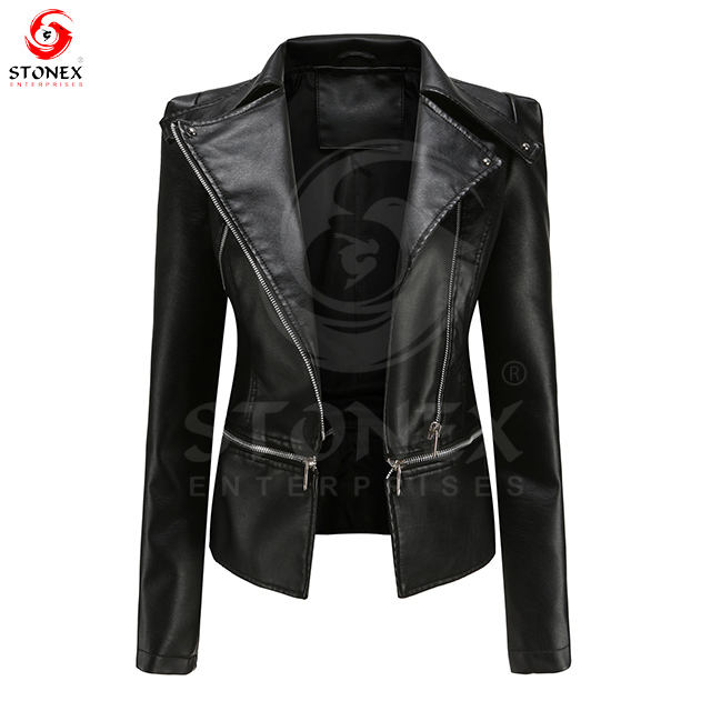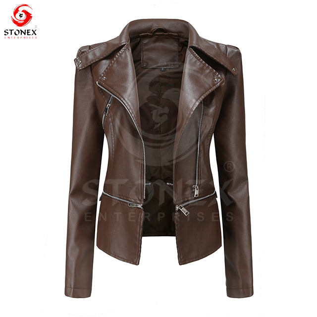 เสื้อแจ็กเก็ตหนังดีไซน์ใหม่เสื้อแจ็กเก็ตแบบมีซิปเสื้อแจ็คเก็ตหนัง/พรีเมี่ยมแบบนุ่มพิเศษสำหรับผู้หญิง