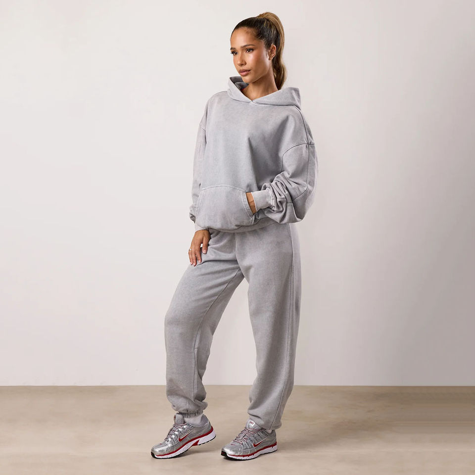 ชุดวอร์มสำหรับผู้หญิงชุดวอร์มผ้าคอตตอนสีเทาฟอกไซส์ใหญ่ไร้ขีดจำกัดดีไซน์ใหม่