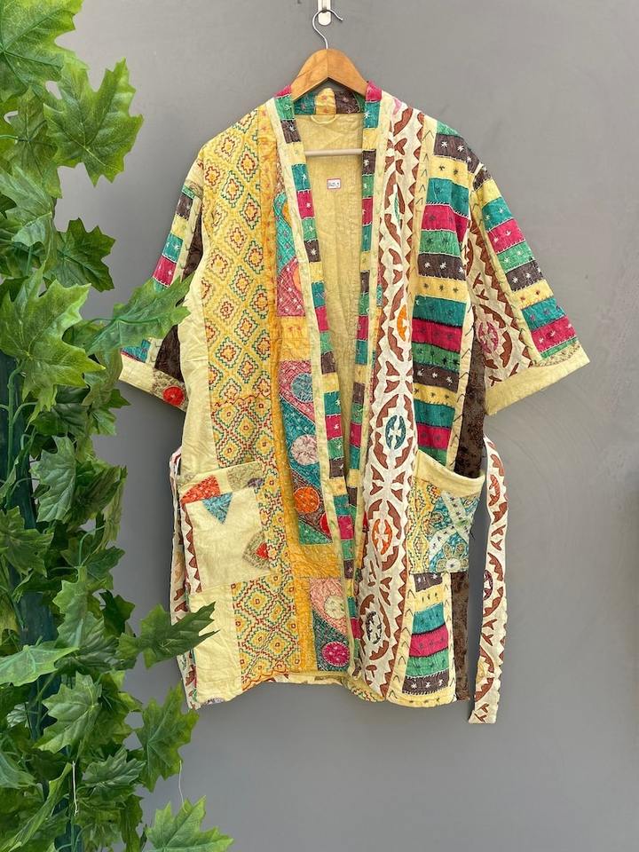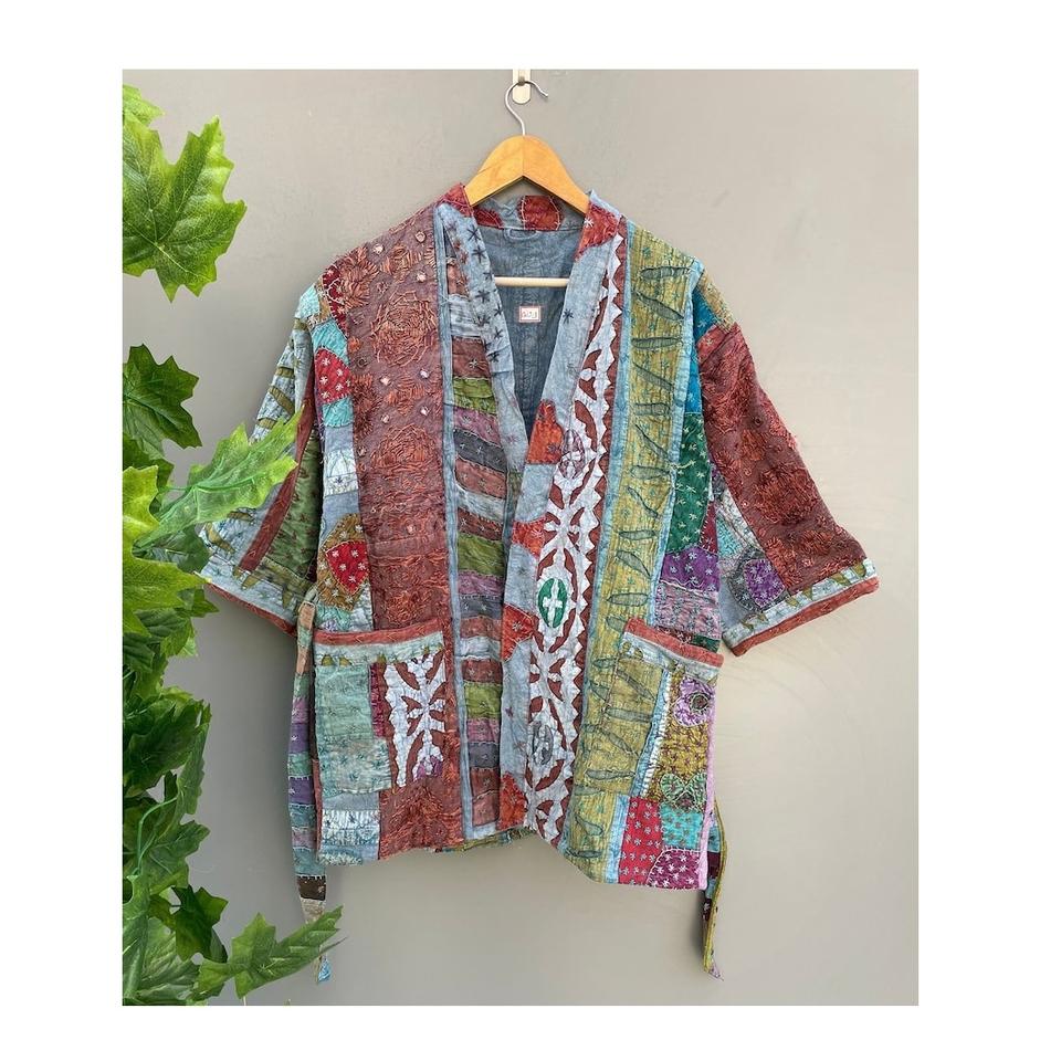 เสื้อแจ็กเก็ตกิมิโนบุผ้า Kantha ยาวดีไซน์ใหม่สำหรับผู้หญิงใช้เป็นผ้าคลุม