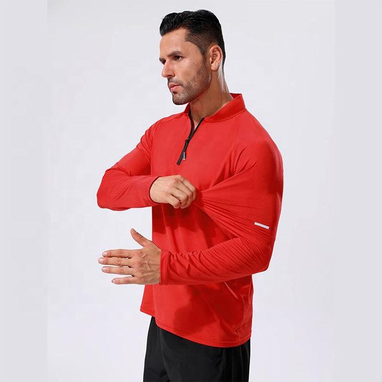 New Design Long Sleeve Mens Quarter Zip t Shirt Quick Drying Polyester t Shirt T-shirt for Tennis Running Sports