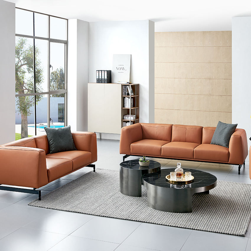 ชุดโซฟาสำนักงานหนังแท้เฟอร์นิเจอร์ห้องนั่งเล่นหรูหราดีไซน์ใหม่