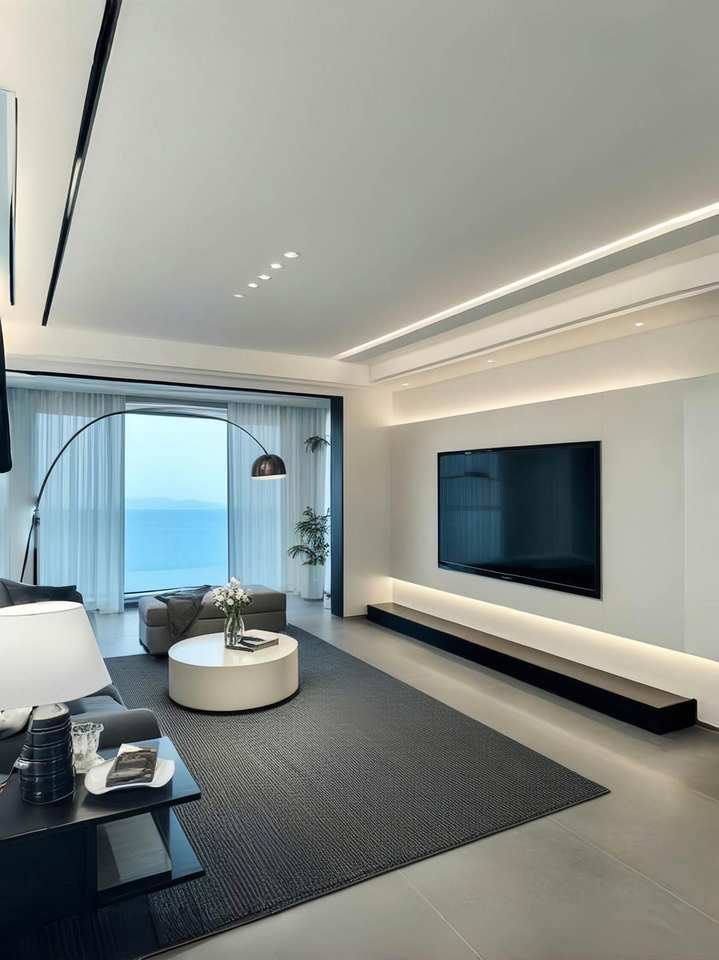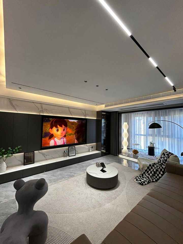 ตู้วางทีวีขาตั้งทีวีเป็นชุดผนังสำหรับความบันเทิงในบ้านดีไซน์ใหม่หรูหราทันสมัย