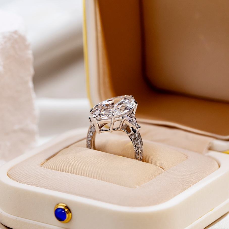 แหวนหมั้นเพชรเพาะเลี้ยงทรงมาร์ควิส 7.1 กะรัต ทองคำแท้ 14k ดีไซน์ใหม่ MSR-1726 ได้รับการรับรองจาก IGI