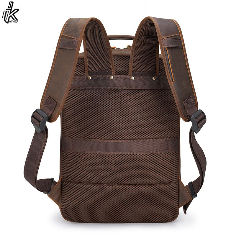 กระเป๋าเป้สะพายหลังสำหรับผู้ชาย,กระเป๋าสะพายหลังหนังเครซีฮอร์สของแท้กันขโมยสไตล์วินเทจสำหรับเดินทาง