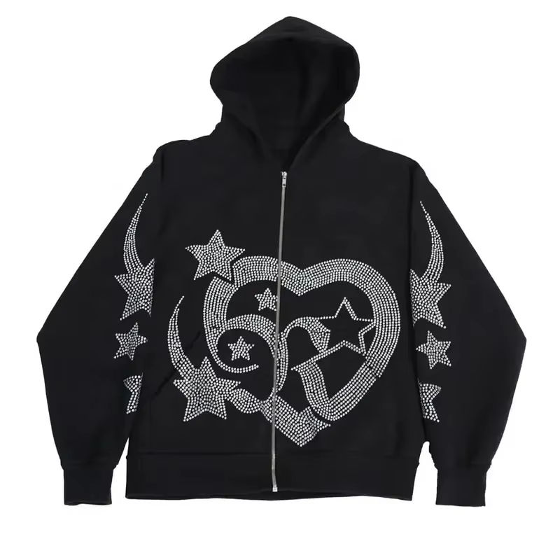 เสื้อฮู้ดสวมหัวแบบลำลองของผู้ชายเสื้อมีฮู้ดแบบสวมหัวประดับพลอยเทียมสำหรับฤดูหนาวเสื้อผ้าออกแบบโลโก้ได้เองสำหรับผู้ชาย