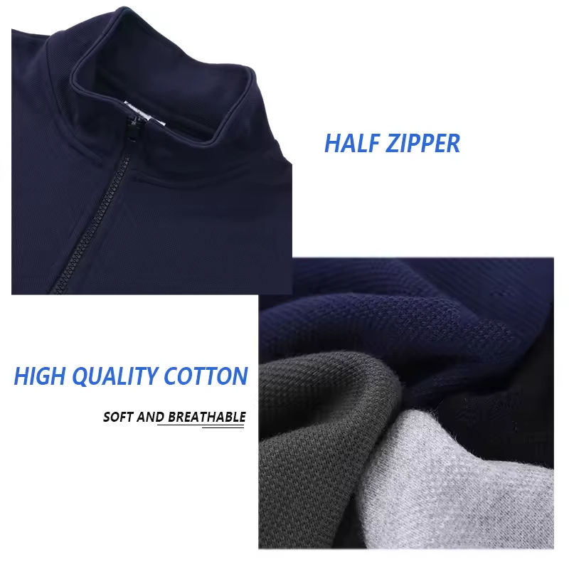 1/4ขนแกะสีฟ้าสำหรับฤดูหนาวของผู้ชายปักลายด้วยซิปแขนยาวผ้าฝ้าย100% ย้อมธรรมดาสำหรับฤดูหนาวดีไซน์ใหม่