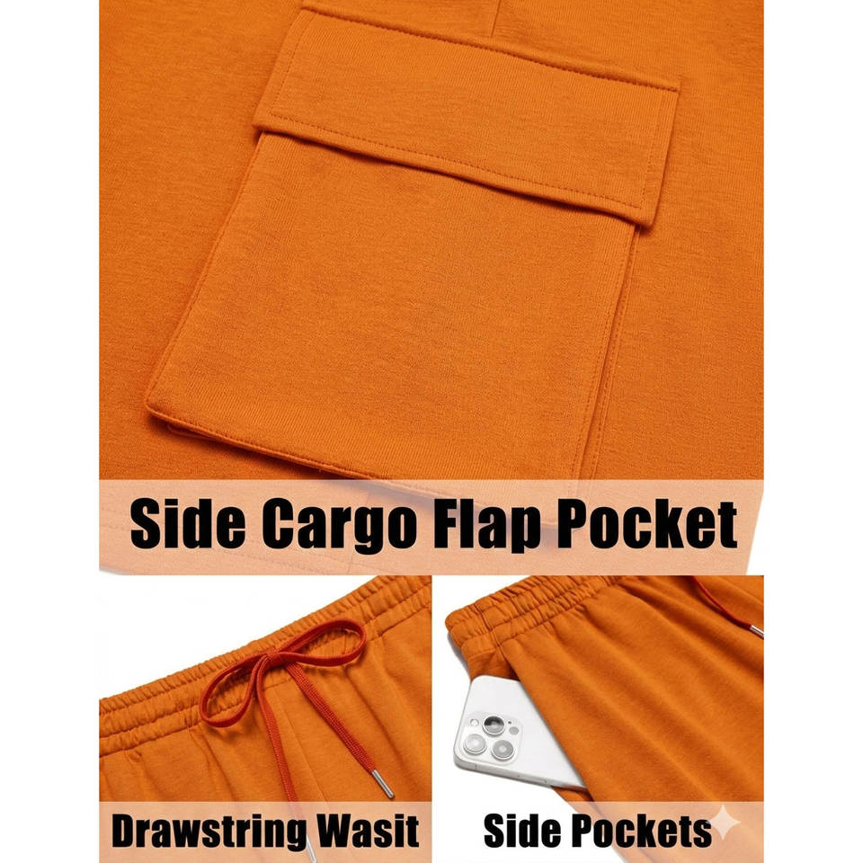 เสื้อยืดแขนสั้นและกางเกงขาสั้นคาร์โก้สีส้มสำหรับผู้ชายดีไซน์ใหม่ชุดลำลองฤดูร้อนสำหรับสวมใส่ในชีวิตประจำวัน