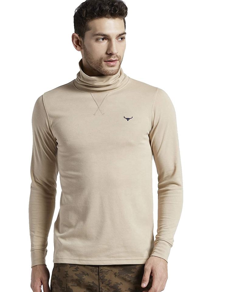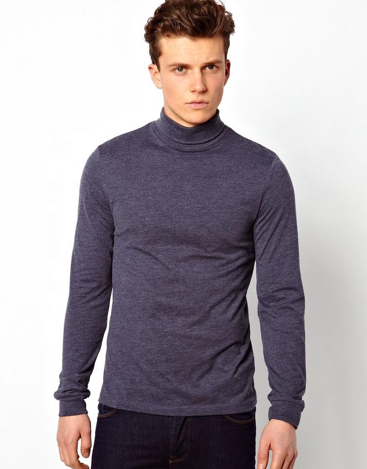 เสื้อยืดคอกลมแขนยาวผ้าคอตตอน100% ตาข่ายถักพิมพ์ลายสไตล์ลำลองคอสูงดีไซน์ใหม่