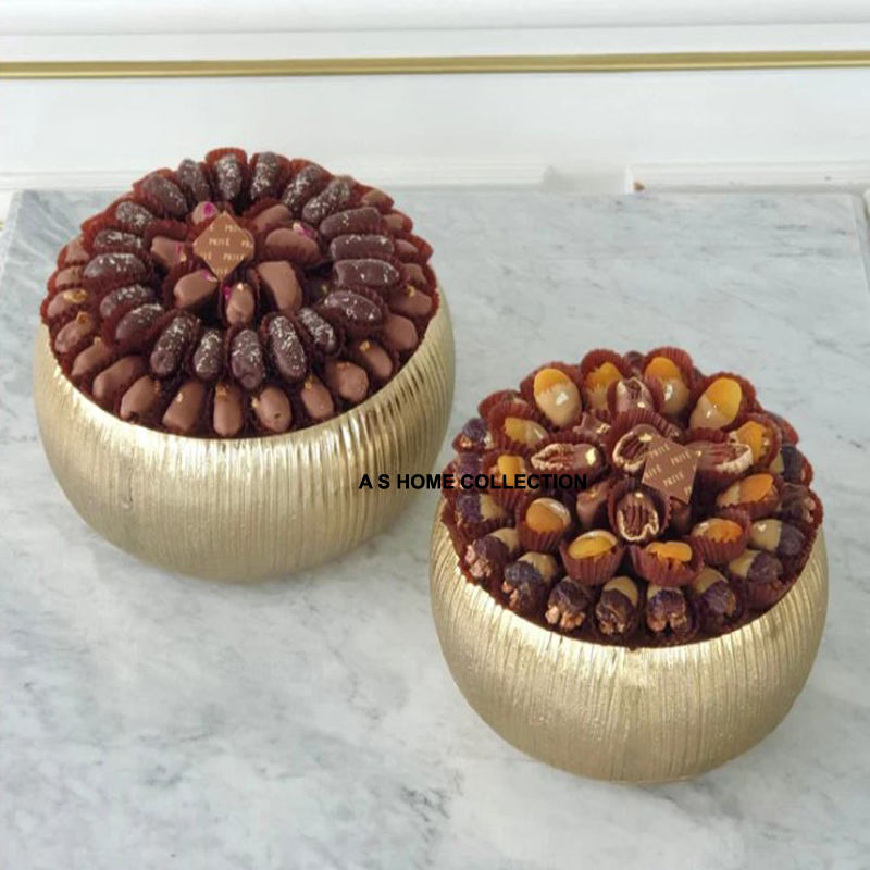ชามเสิร์ฟผลไม้ทำจากโลหะตกแต่งด้วยทองสำหรับตกแต่งโต๊ะดีไซน์ใหม่