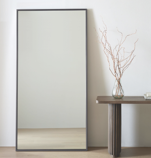 กระจกติดผนังกรอบโลหะแบบตั้งได้ยาวเต็มตัวสำหรับร้านเสริมสวยกระจกขนาดใหญ่ห้องนอนห้องนั่งเล่นดีไซน์ใหม่