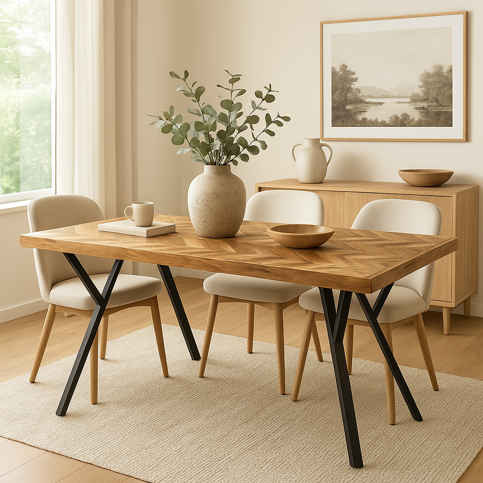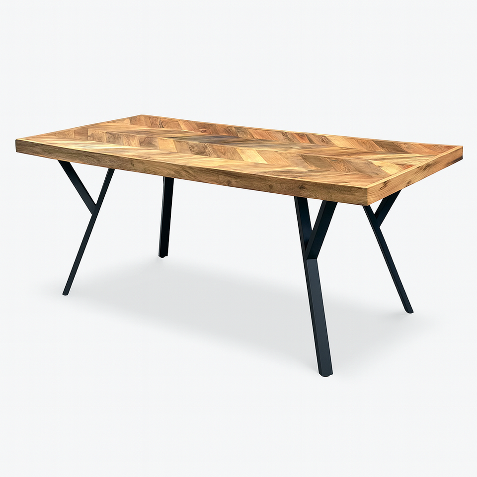 ชุดโต๊ะอาหารดีไซน์ใหม่ทันสมัยลายก้างปลา ทำจากไม้เนื้อแข็ง ขาเหล็กทรงวงรี พับเก็บได้ เหมาะสำหรับบ้าน วิลล่า ร้านอาหารกลางแจ้ง