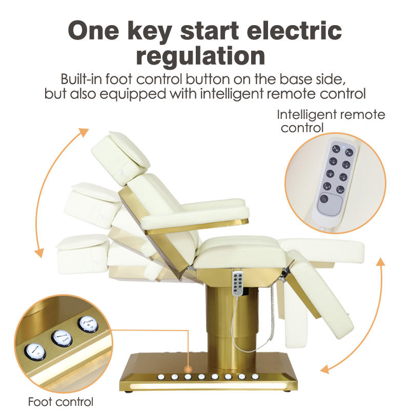 เตียงสปาไฟฟ้า4มอเตอร์ทำจากทองที่นิยมใช้ในร้านเสริมสวยเตียงเครื่องสำอางเสริมสวยดีไซน์ใหม่