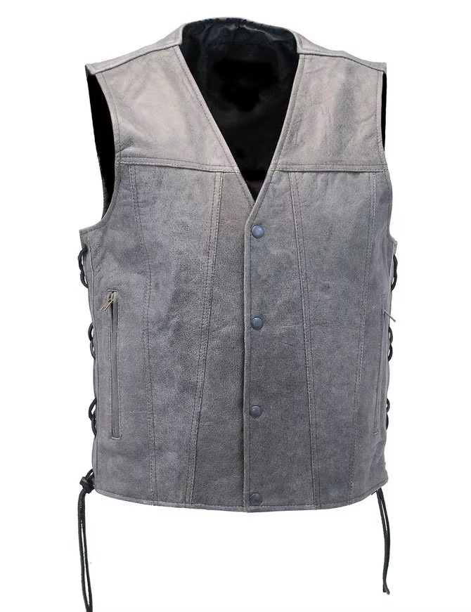 เสื้อกั๊กหนังขี่มอเตอร์ไซด์สำหรับผู้ชายเสื้อกั๊กผู้ชายสไตล์ใหม่ระบายอากาศได้ดีปรับได้แฟชั่นล่าสุดออกแบบได้ตามต้องการ