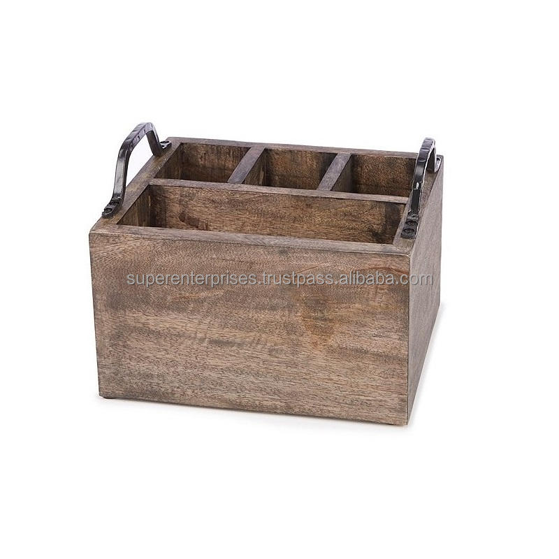 แคดดี้เครื่องเงินไม้ไผ่ธรรมชาติพร้อมที่จับที่เก็บเครื่องปรุงสินค้าขายส่งงานหัตถกรรมอินเดียของตกแต่งบ้าน
