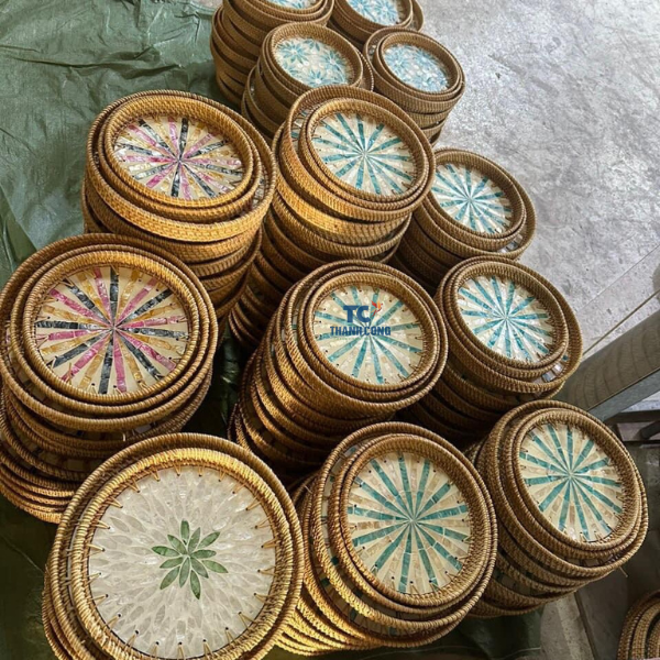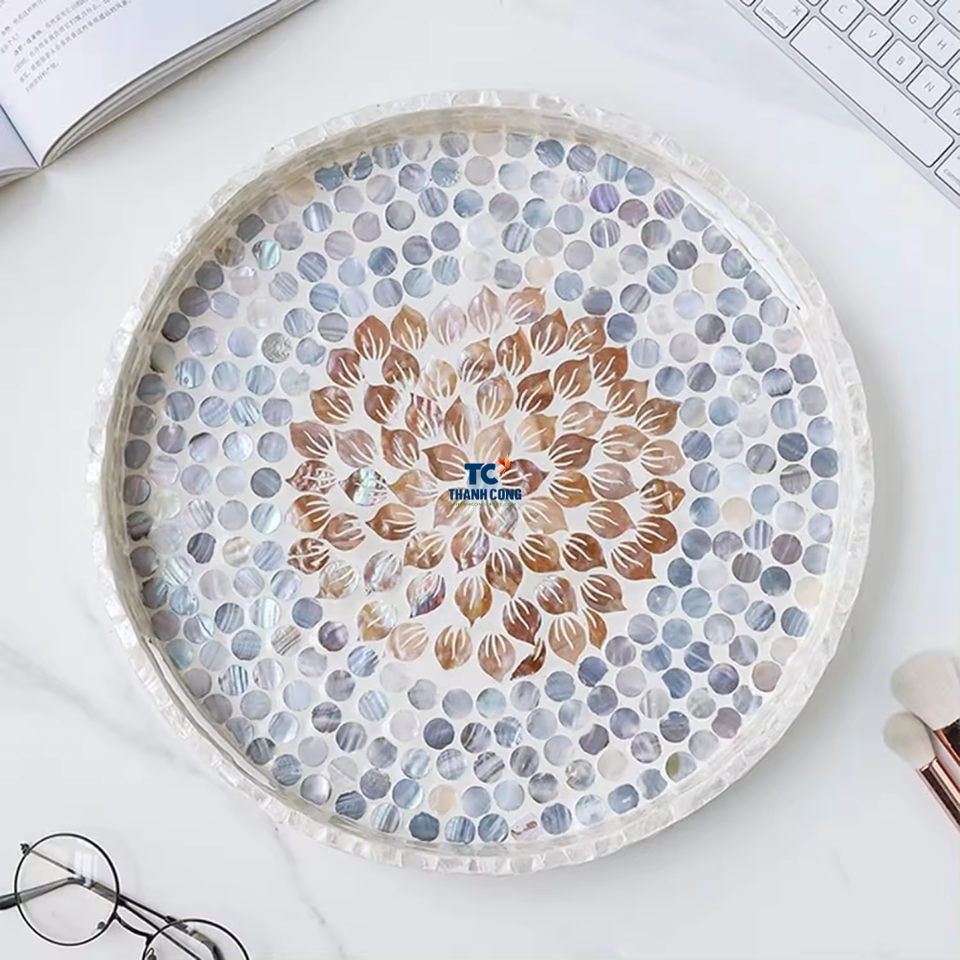 ถาดเสิร์ฟทรงกลมมุกสีฟ้าชื่อผลิตภัณฑ์