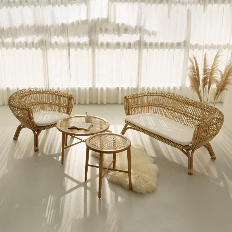 ออกแบบใหม่โซฟาหวายธรรมชาติโซฟาสไตล์หรูหราสําหรับห้องนั่งเล่นและร้านอาหารโรงแรมกาแฟStylized SF31