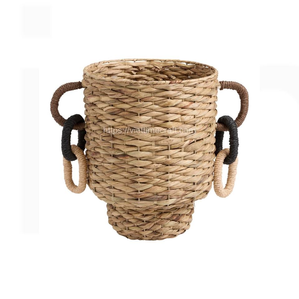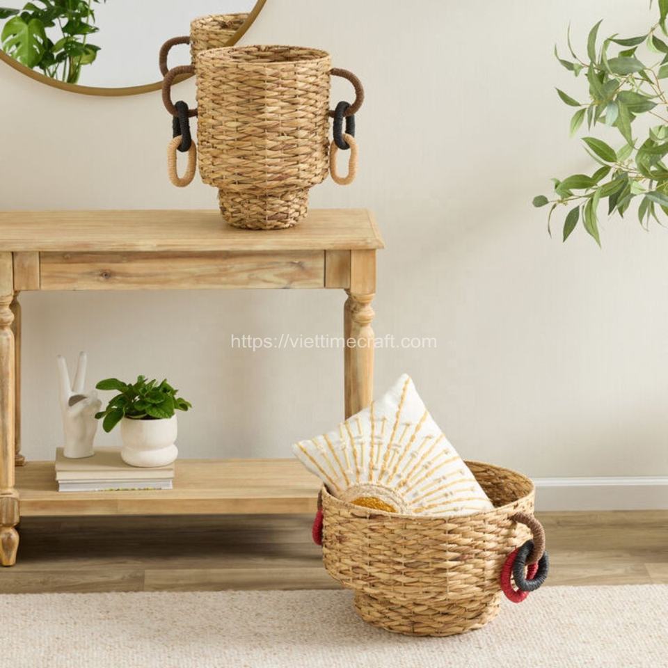 ตะกร้าเก็บของดีไซน์ใหม่จากผักตบชวาและหญ้าทะเล โครงสแตนเลส ดีไซน์ทันสมัย ความจุ 6-10 ลิตร ขายส่งจากเวียดนาม