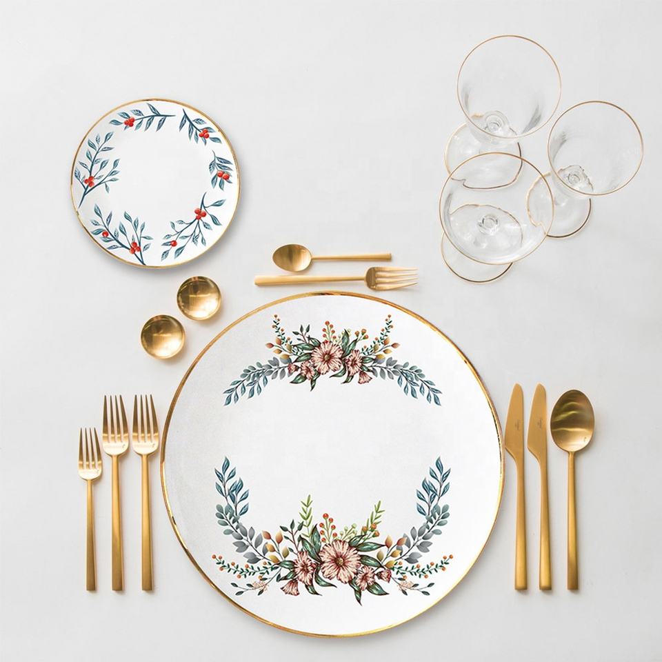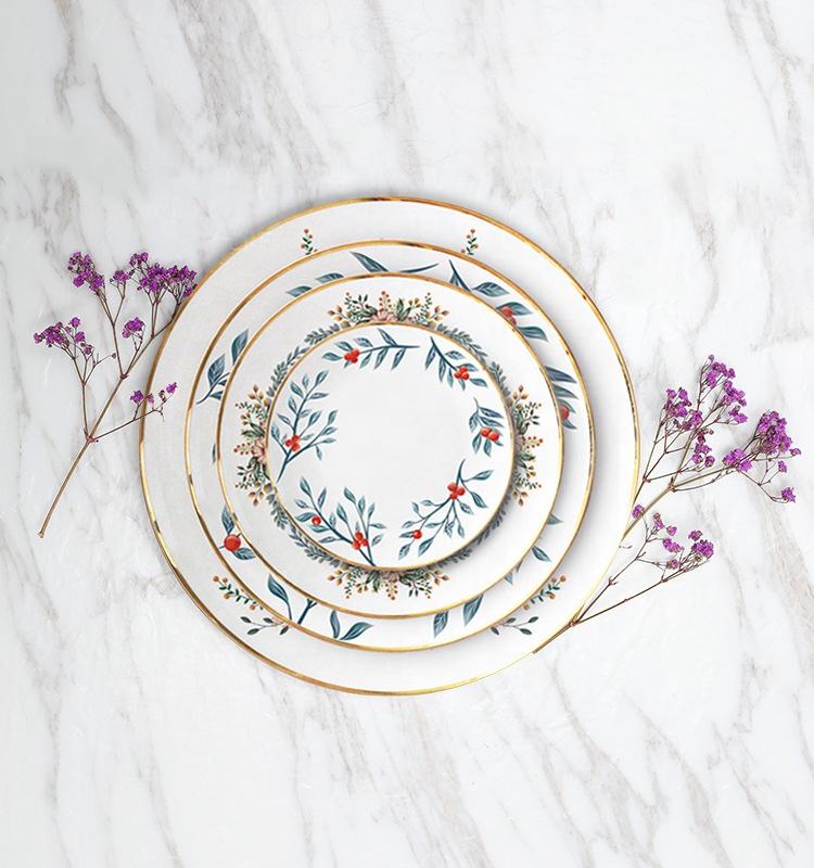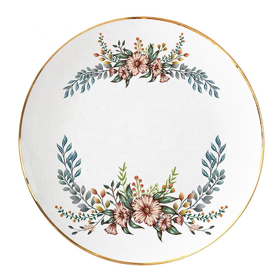 จานเซรามิกลายพวงมาลัยหรูหรานอร์ดิกดีไซน์ใหม่พร้อมขอบทอง