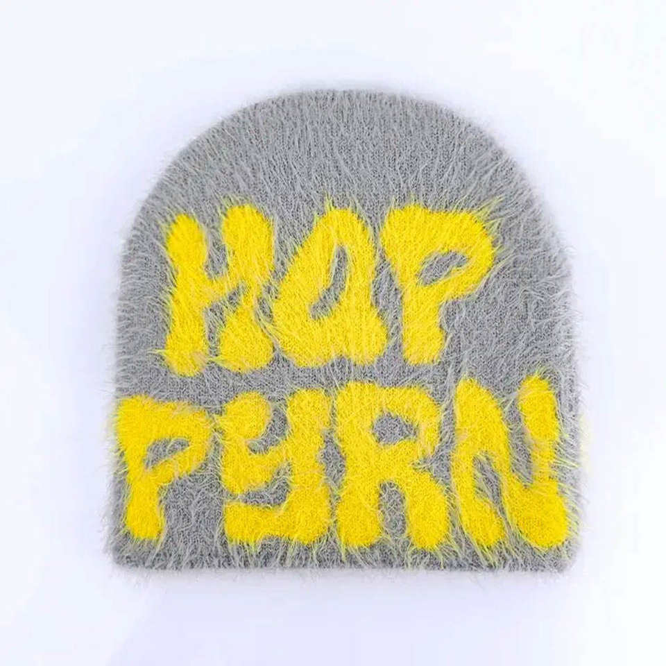New Design OEM Manufacturer Custom Logo Hiphop Streetwear Knitted Beanie Furry Fuzzy Mohair Beanie Winter Hat