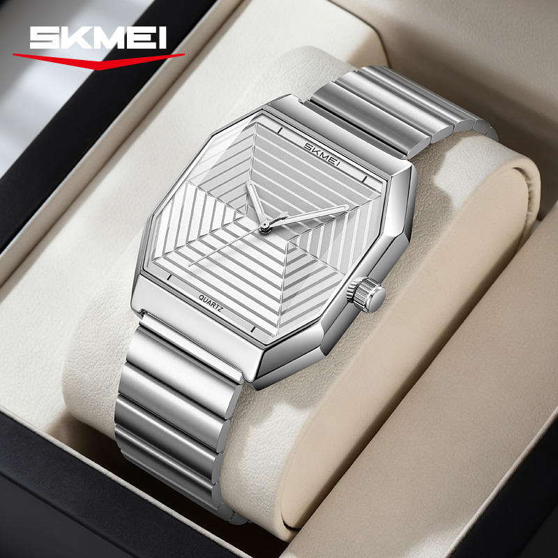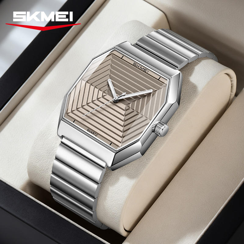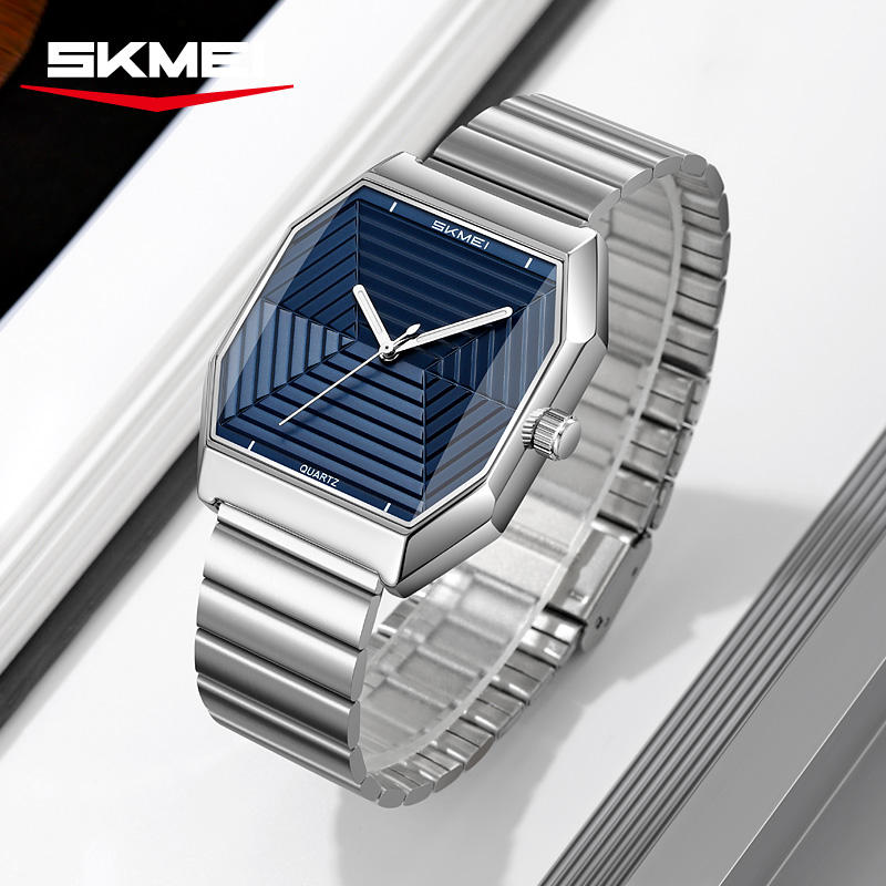 นาฬิกาออกแบบใหม่ทรงแปดเหลี่ยม OEM รับทำโลโก้ สายสแตนเลส กันน้ำ 3ATM ดีไซน์มินิมอล นาฬิกาควอตซ์สำหรับผู้ชาย