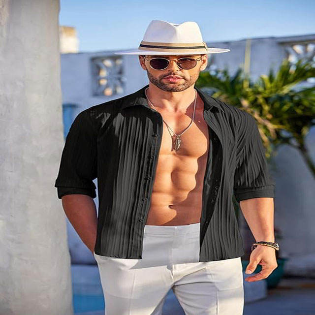 ชุดเดรสลำลองของผู้ชายเสื้อเชิ้ตดีไซน์ใหม่พร้อมแขนยาวเต็มตัวป้องกันรอยยับและระบายอากาศได้ดีไซส์ใหญ่พิเศษ