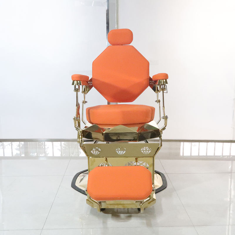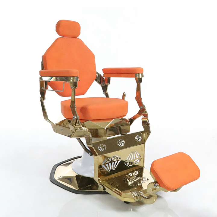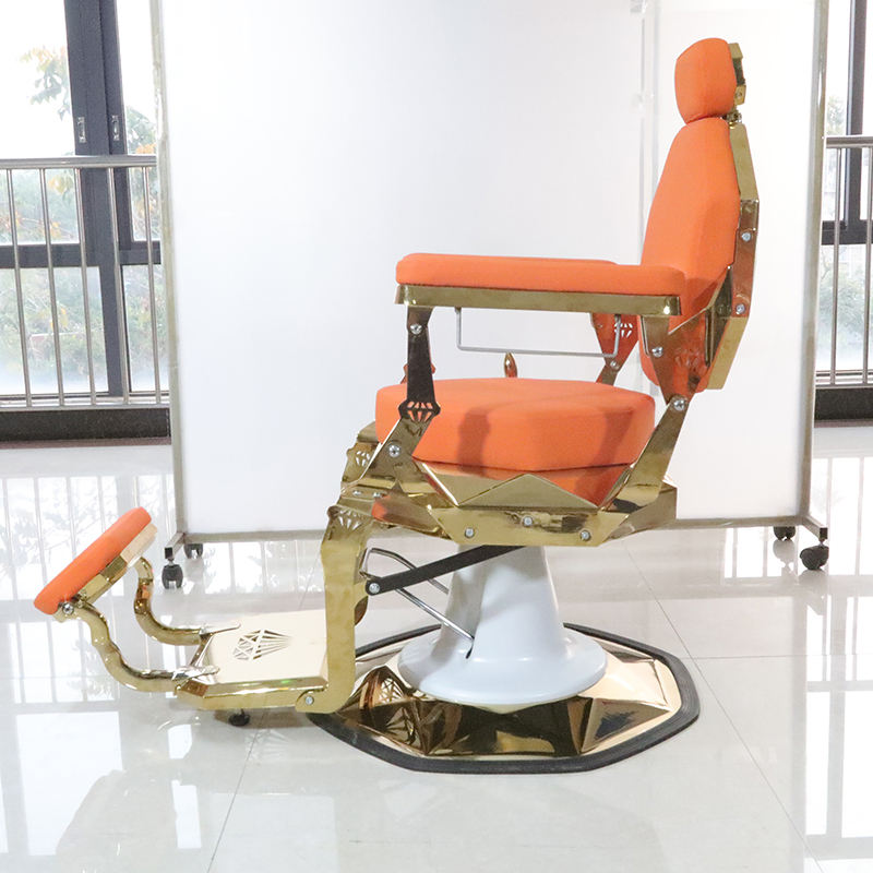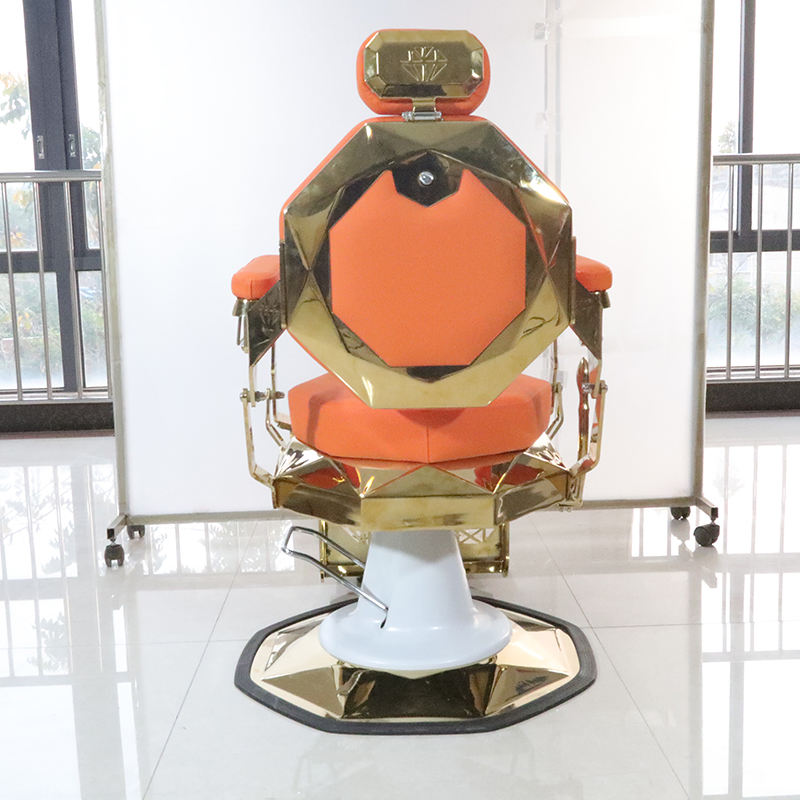 เก้าอี้ตัดผมดีไซน์ใหม่ สีส้ม โครงทองหรูหรา แข็งแรง ทนทาน หมุนได้ ปรับเอนได้ สำหรับโกนหนวด ตกแต่งด้วยเพชร เหมาะสำหรับร้านทำผม