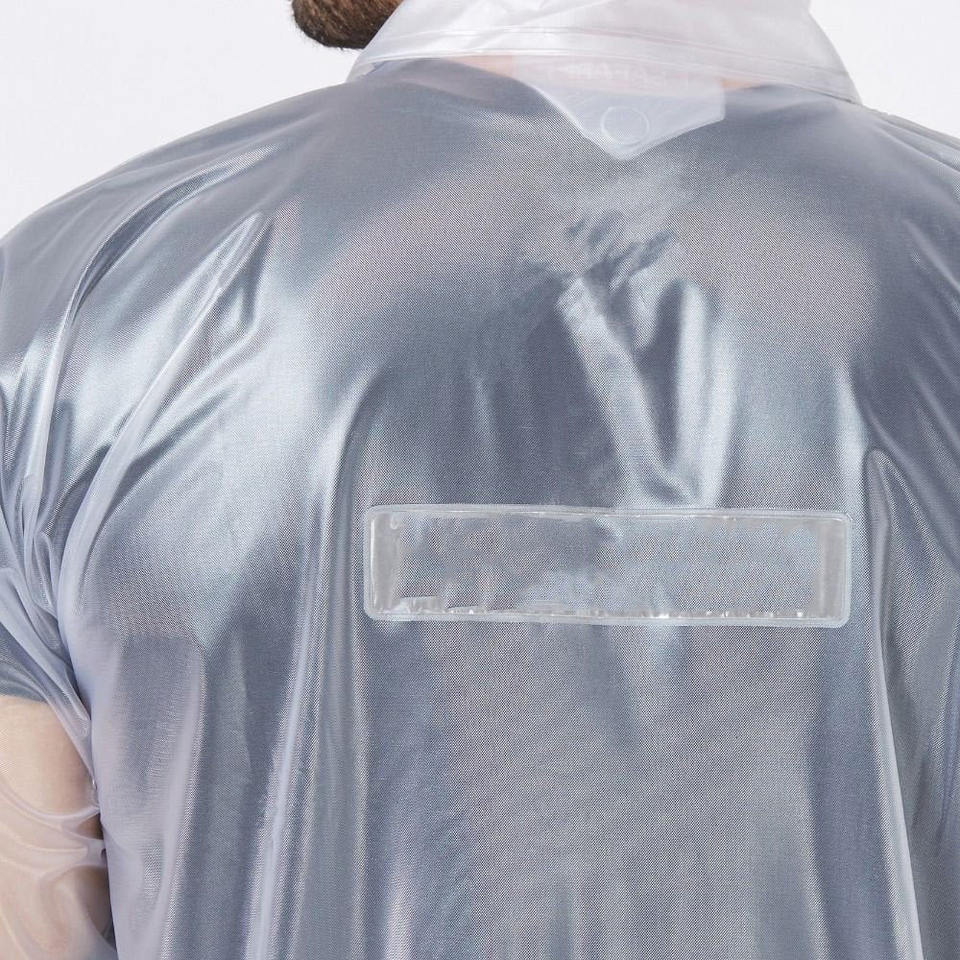 เสื้อกันฝนพลาสติก PE กันน้ำแบบใช้แล้วทิ้งสำหรับผู้ใหญ่ระบายอากาศและปรับแต่งได้