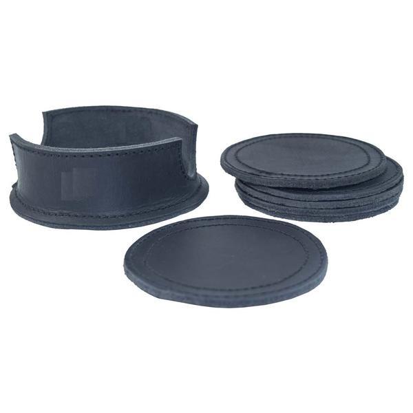 ชุดแผ่นรองจานและที่รองแก้วหนัง PU ดีไซน์ใหม่ สีดำ สำหรับโต๊ะอาหาร