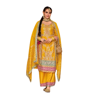 ชุดส่าหรีปากีสถานแบบใหม่ ผ้าไหมชีนอนเนื้อหนา งานปักหรูหรา ชุดสามชิ้น สำหรับงานแต่งงานพิเศษ