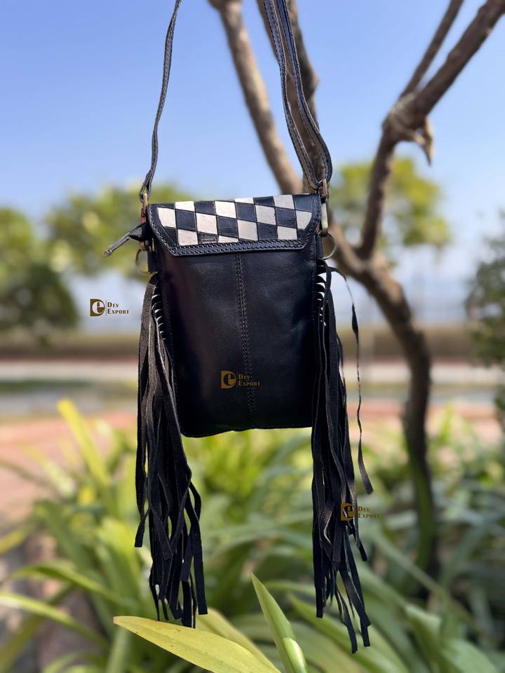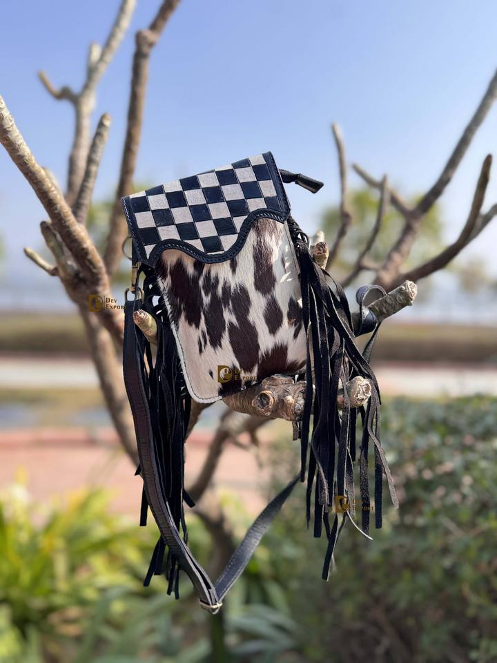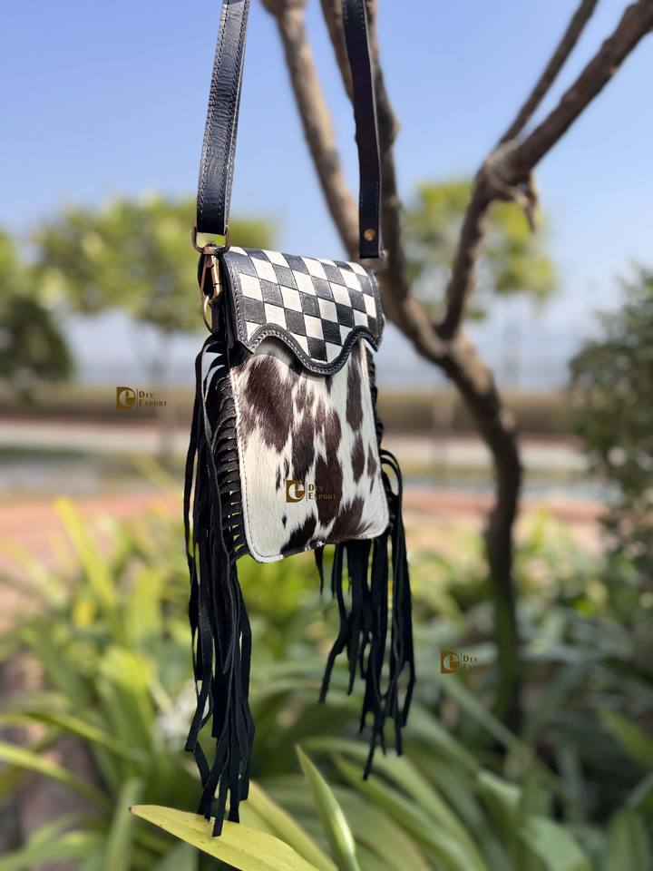 กระเป๋าโทรศัพท์ดีไซน์ใหม่ หนังวัวแท้ แต่งขนสัตว์ ลายฉลุแกะสลัก กระเป๋าสะพายข้าง ขนาดเล็ก