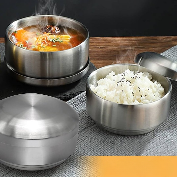 ชามสองชั้นขัดเงา ดีไซน์ใหม่ สแตนเลสคุณภาพพรีเมียม เก็บความร้อน รักษาสิ่งแวดล้อม เหมาะสำหรับใช้ในโรงแรม ร้านอาหาร และครัวมืออาชีพ