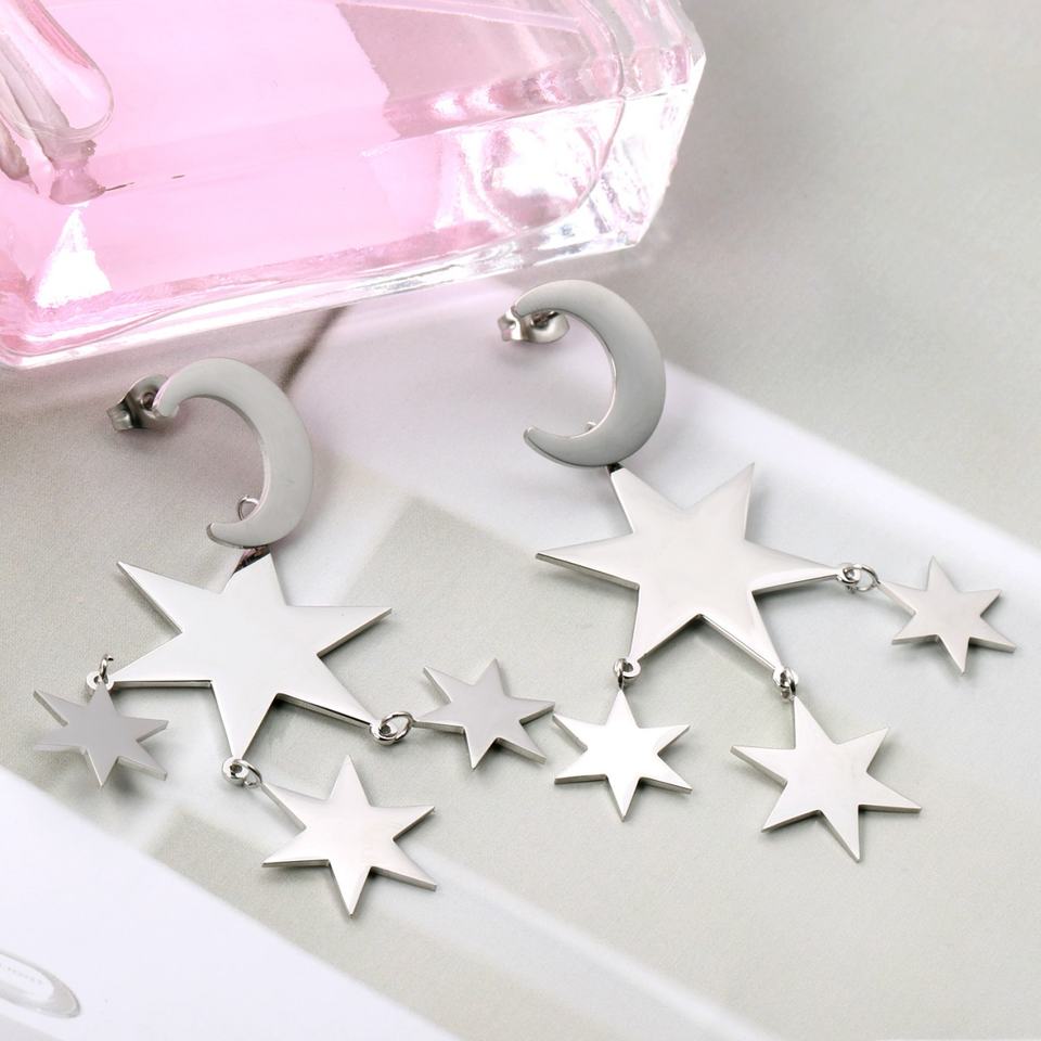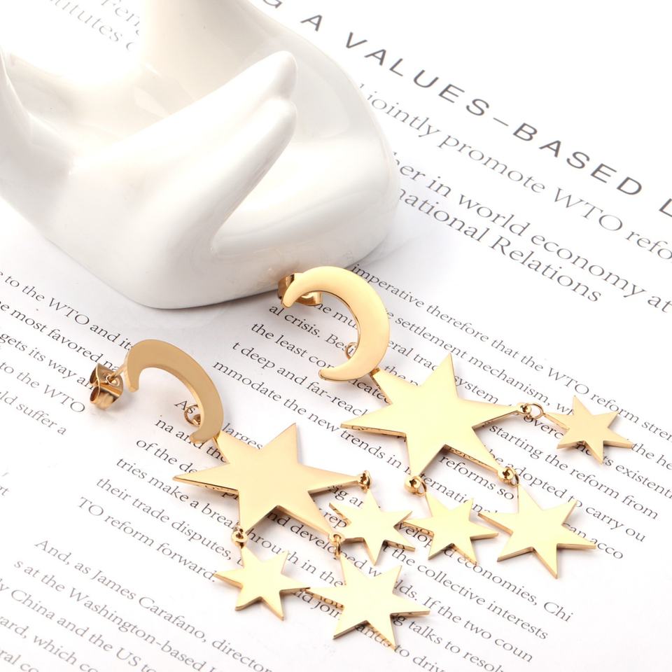 ต่างหูดีไซน์ใหม่สุดฮิต ประดับดาวและพระจันทร์ ชุบทอง 18K เหมาะสำหรับงานแต่งงาน/เดท/งานแสดง
